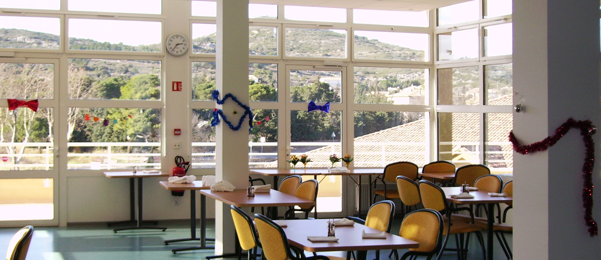 L’établissement possède une salle de restauration au rez-de-chaussée, donnant sur le parc, et dans laquelle sont servis le déjeuner et le dîner. Le petit déjeuner est servi dans les chambres. Les menus sont élaborés par le chef et cuisinés sur place, tout en tenant compte des contraintes liées aux différents régimes des résidents. Un goûter est proposé au salon d’animation.