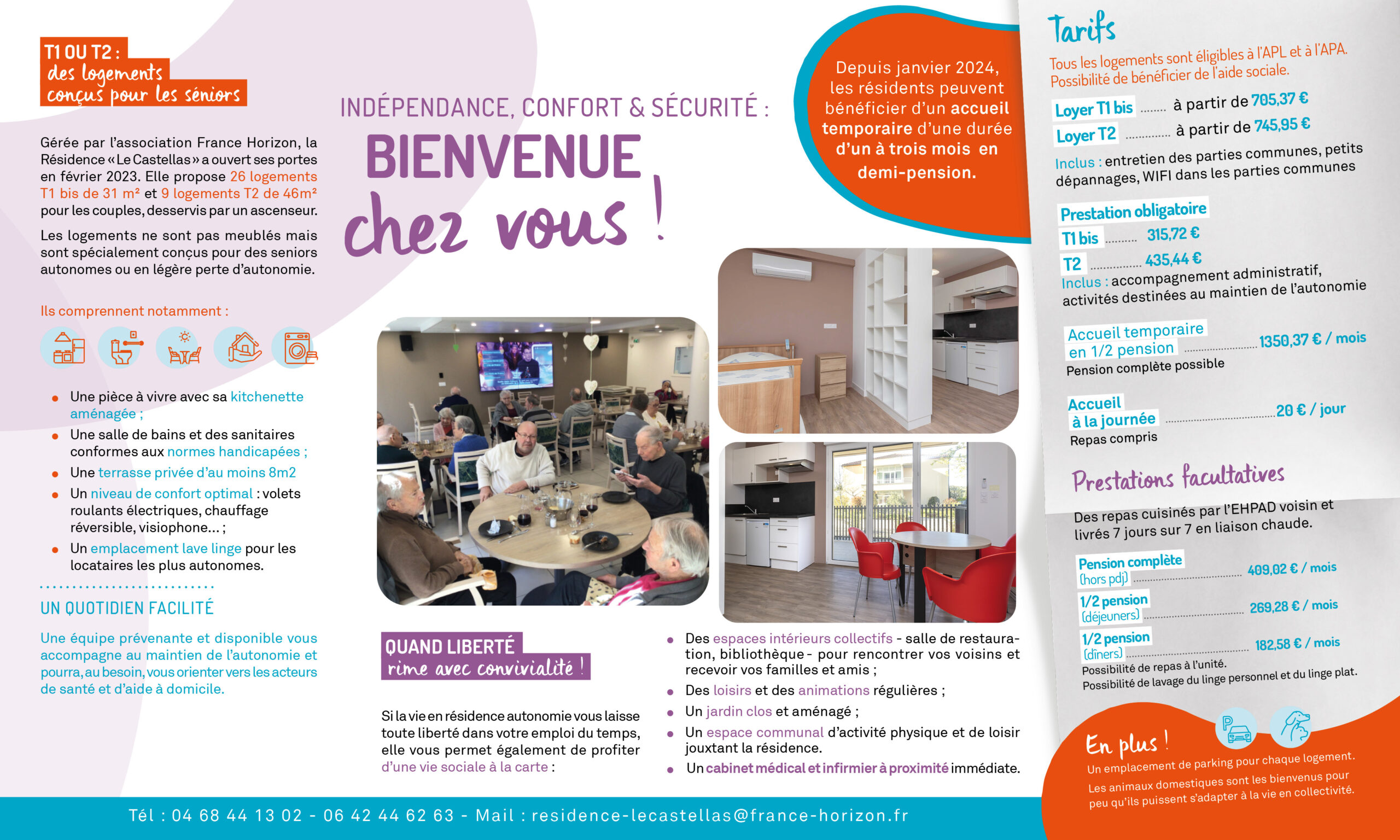 A 5 minutes de Narbonne et dans un environnement préservé proposant de nombreux commerces et services, la résidence « Le Castellas » – bâtie en 2022 – propose 26 logements T1 bisde 31 m² et 9 logements T2 de 46m² pour les couples ainsi qu’une vie sociale à la carte.